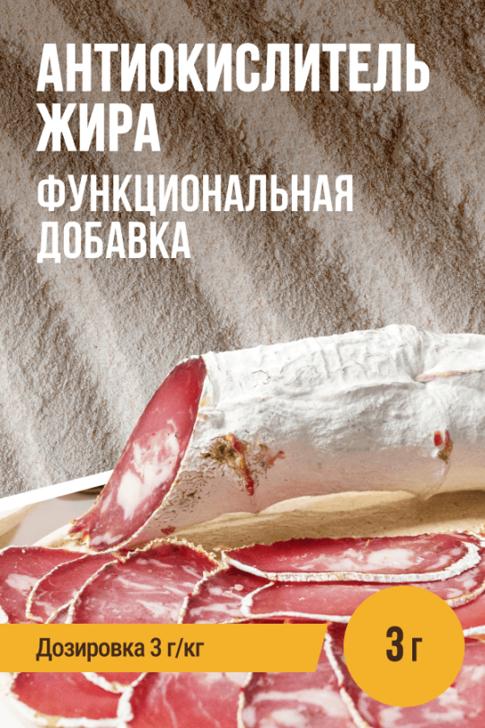 Цена указана за пакетик. В пакетике 3 г. Антиокислителя. Этого количества достаточно для защиты от прогоркания 1 кг мясопродукта.