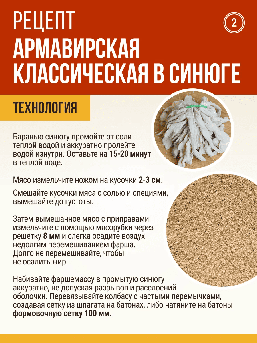 До вымешивания лучше всего заняться промывкой и замачиванием натуральной оболочки. Баранью синюгу промойте от соли теплой водой и аккуратно пролейте водой изнутри. Оставьте на 15-20 минут в теплой воде.