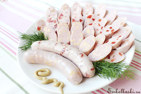 Рецепт "Сардельки с наполнителем КАЛЕЙДОСКОП"