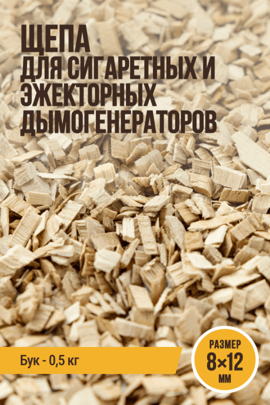 Щепа для копчения, размер 8х12 мм, бук, для сигаретных и эжекторных дымогенераторов - 500 г