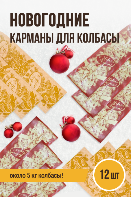 Набор карман фиброуз., Новогодний "Шары", 50 мм, 31 см, клипса с петлей - 12 шт.