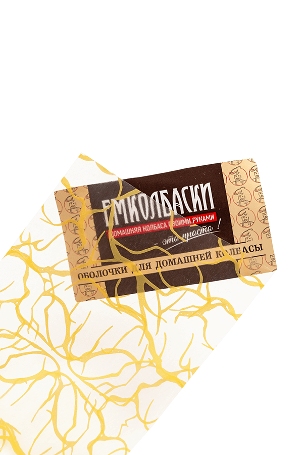 Коллагеновая ветчинная прямая оболочка, калибр 80 мм - 10 метров, бесцветная, рисунок под синюгу
