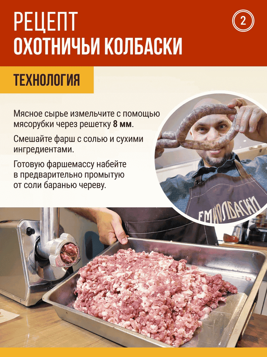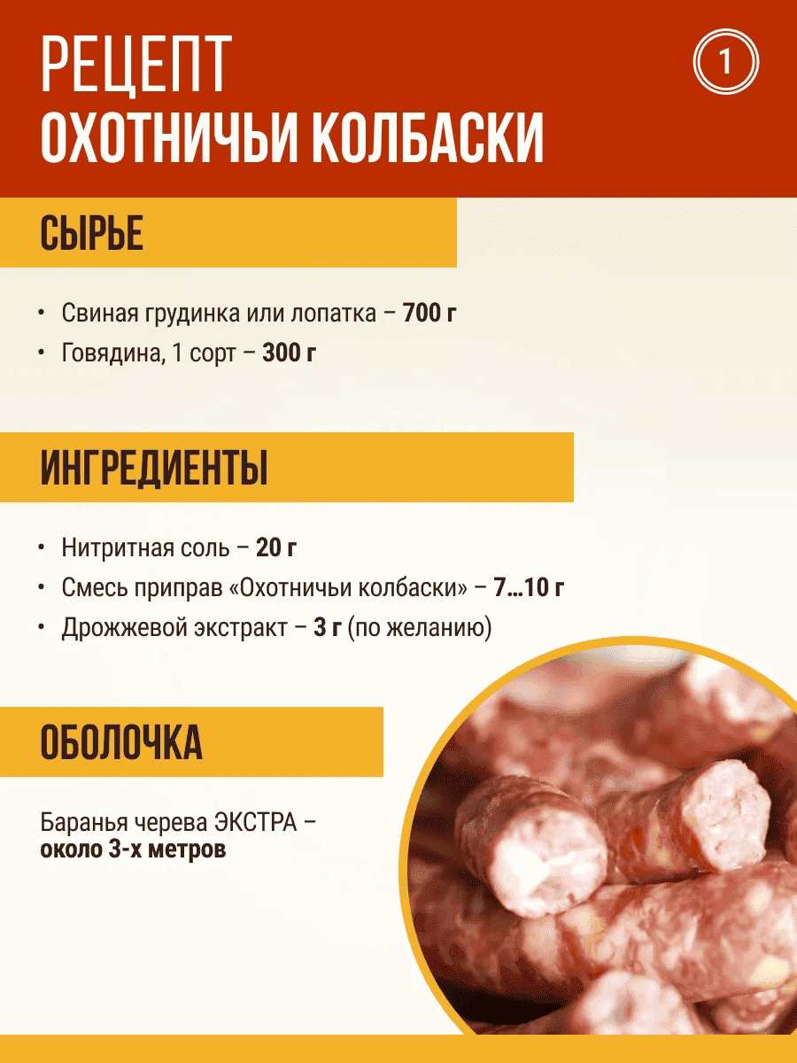 - Смесь приправ «Охотничьи колбаски» - 7…10 г