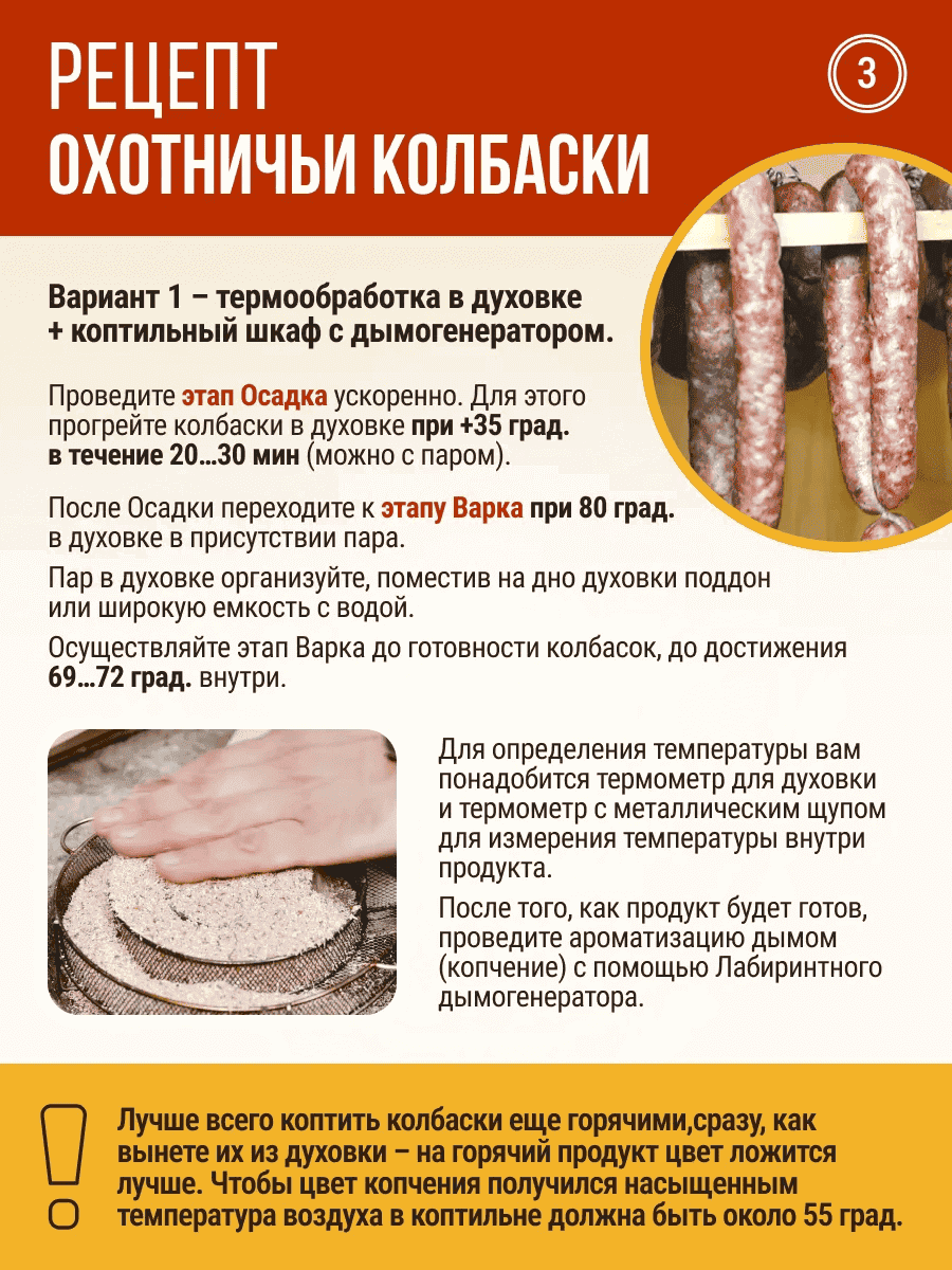 После того, как продукт будет готов, проведите ароматизацию дымом (копчение) с помощью Лабиринтного дымогенератора.