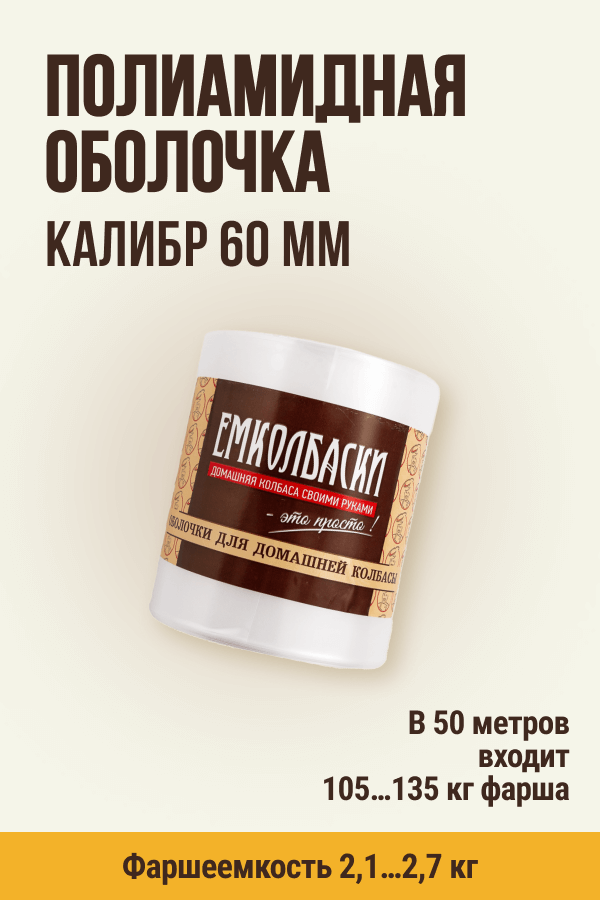ОПТ - 50 метров, калибр 60 мм, Полиамидная оболочка для Вареных колбас и Ветчин