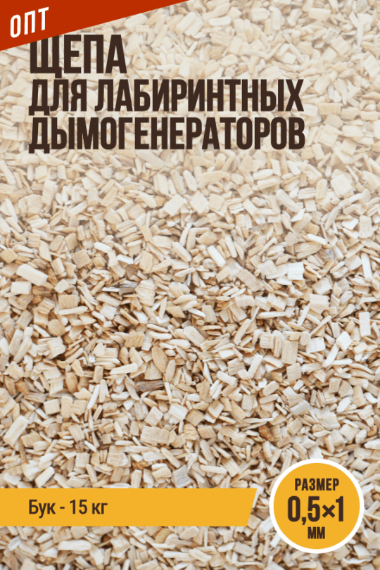 ОПТ, Щепа для копчения, размер 0,5x1 мм, бук, для лабиринтных дымогенераторов - 15 кг