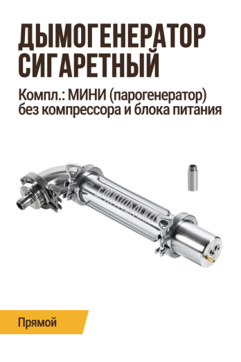 Прямой дымогенератор в комплект Термокамеры сигаретного типа, комплектация МИНИ (парогенератор): Дымогенератор прямой + Переходник кламп/резьба + муфта (без компрессора и без блока питания)