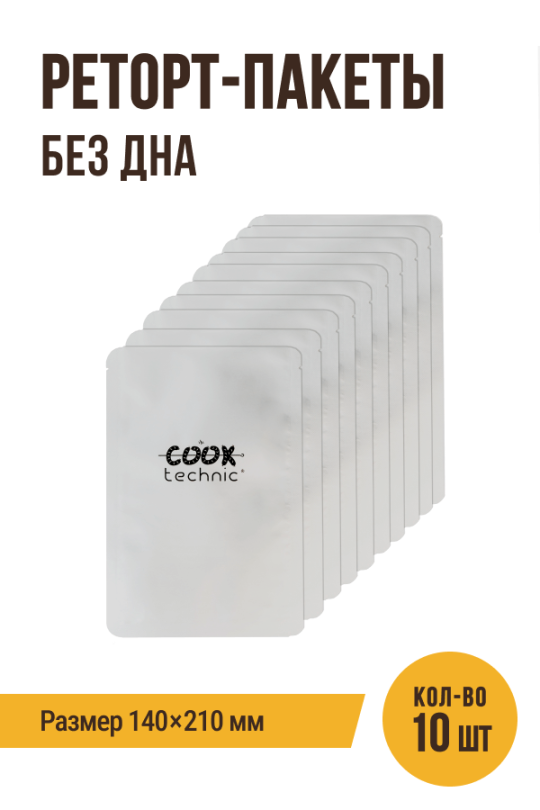 Реторт-пакеты плоские, без дна, 10 штук (пленка 4 слоя), размер 140х210 мм, пищевой пакет