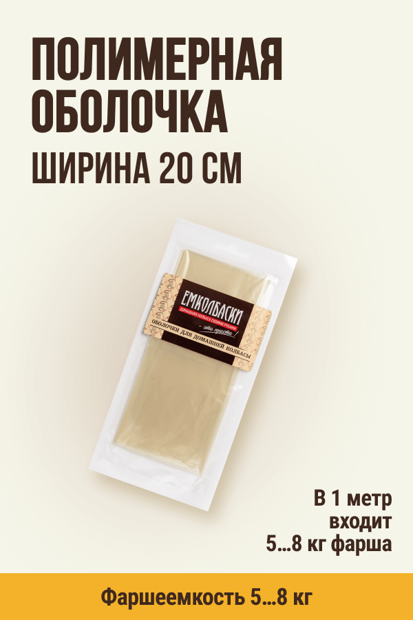 Чудорукав для вяления мяса, ширина 20 см, 1 метр, полимерная оболочка