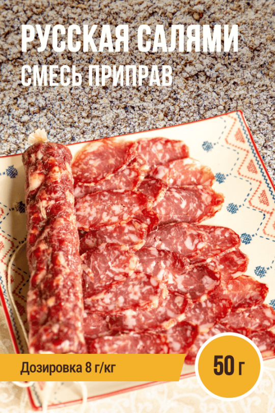 Смесь подходит для изготовления полукопченых и вареных колбас, салями с грубым фаршем.