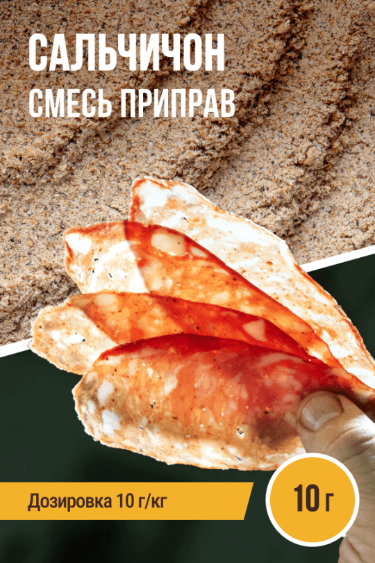 Сальчичон – испанская классическая вяленая или сырокопченая колбаса (в зависимости от региона, где ее делают). Чаще всего изготавливается с помощью вяления и из смеси нежирной свинины (30...40), говядины (20...40) и шпика (15...30) из крупно измельченного фарша, в натуральной оболочке и в благородной белой плесени. Но в зависимости от местных, исторически сложившихся предпочтений, Сальчичон делают и из печени, субпродуктов и т.д.