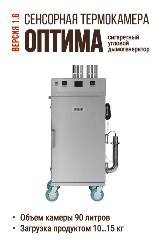 Термокамера ЕМКОЛБАСКИ Оптима без приводов полуавтомат с ЖК-экраном, Сигаретный угловой дымогенератор, рабочий объем 90 л, версия 1.6