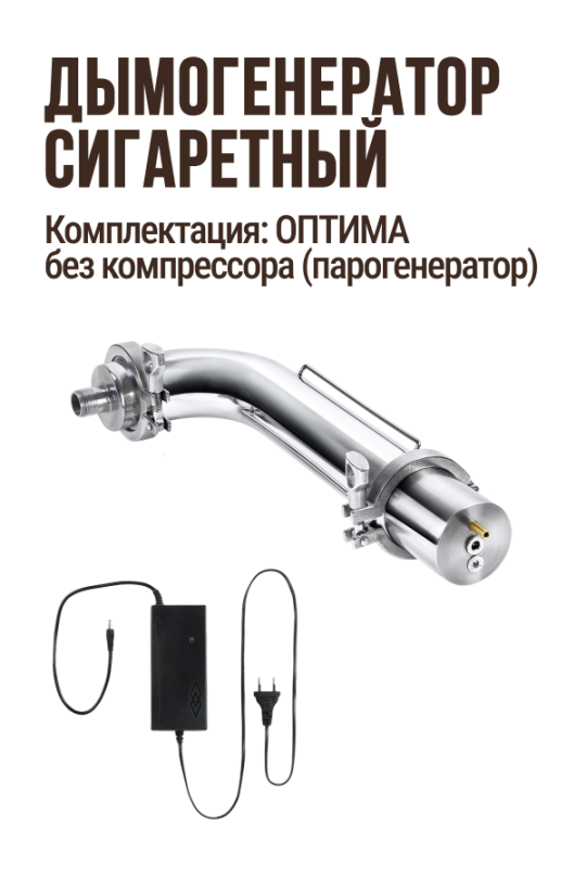Угловой дымогенератор сигаретного типа, комплектация ОПТИМА (парогенератор) без компрессора: Дымогенератор угловой + Переходник с клампа 2" на резьбу 1/2"