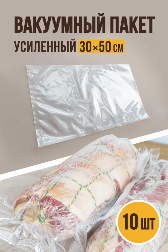 Вакуумные пакеты усиленные, 10 штук, размер 30х50 см, пищевой пакет
